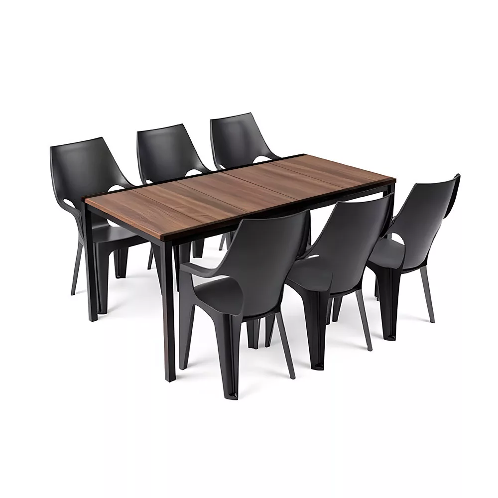 Keter Parker Large 6 + 1 kerti garnitúra – dió asztallap & grafit magas támlás székek