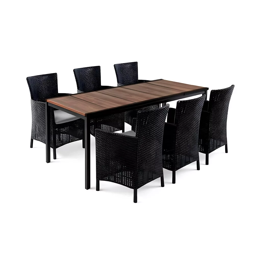 - Összeállítás: 6 db Iowa Rattan Style karfás fotel + 1 db Porto 200 étkezőasztal