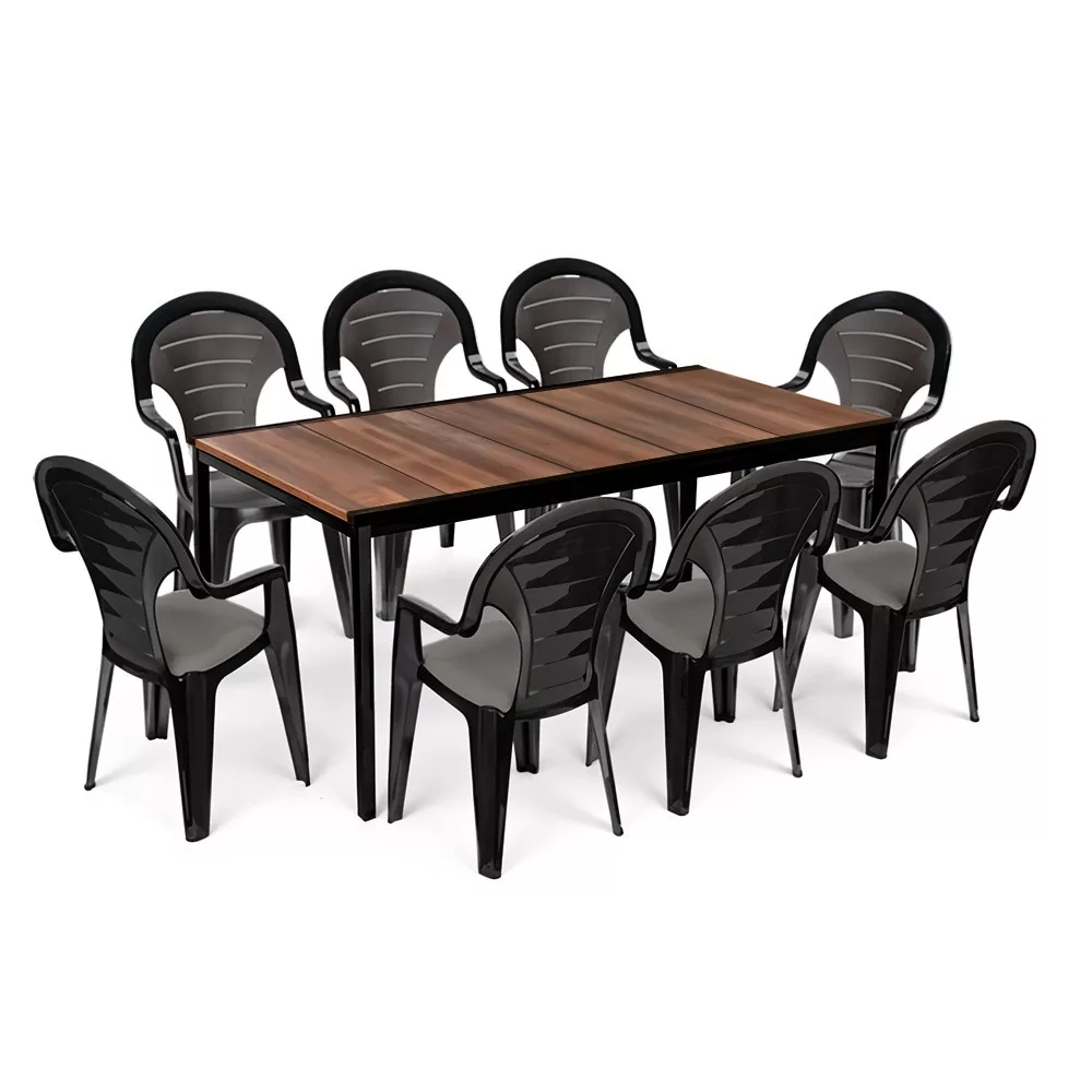 Keter Lagos Large 8+1 kerti garnitúra – dió asztallap & grafit rakásolható székek
