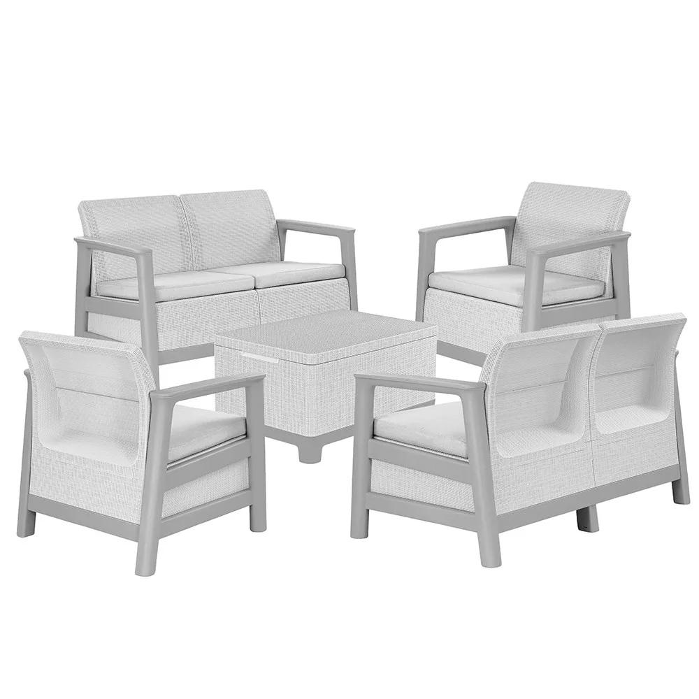 Ideális választás azok számára, akik hamuszürke-világosszürke kerti bútor szettet keresnek, időjárásálló műanyag kültéri bútort szeretnének, kisebb teraszra vagy erkélyre is elhelyezhető kompakt megoldást választanának, illetve előnyben részesítik a tárolóval ellátott kerti asztalt. Stabil, modern és hosszú távon is kényelmes kültéri ülőgarnitúra.