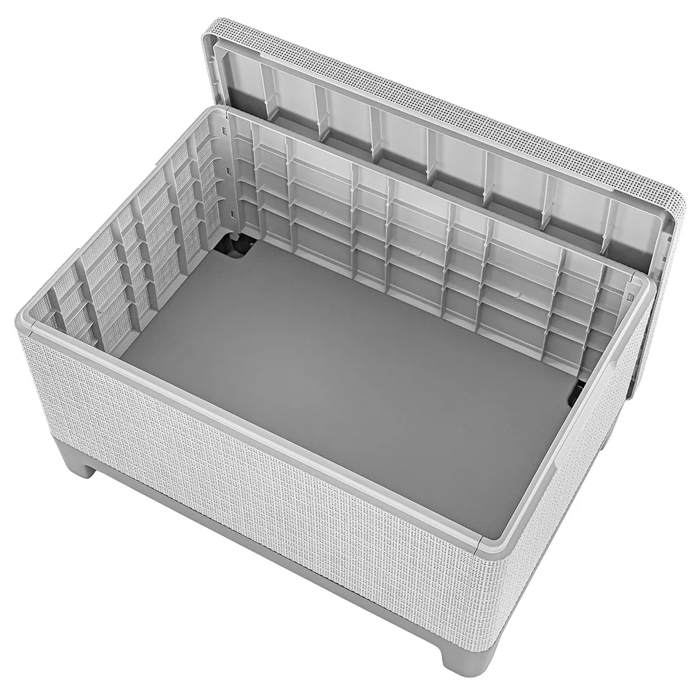 Scandi Box max linea duo kerti bútor szett jute tárolós asztallal – hamuszürke-világosszürke