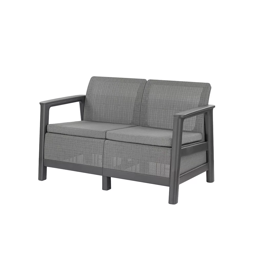 A Scandi linea 2 személyes kerti kanapé letisztult, egységes formavilágot képvisel. A grafit–hűvös szürke árnyalat texturált felület természetes megjelenést biztosít, amely jól illeszkedik zöld környezethez és modern kültéri burkolatokhoz. A két fotelből álló összeállítás harmonikus ülőhelyet teremt teraszon, kertben vagy tágas erkélyen, miközben a visszafogott színvilág könnyen kombinálható más Scandi elemekkel.