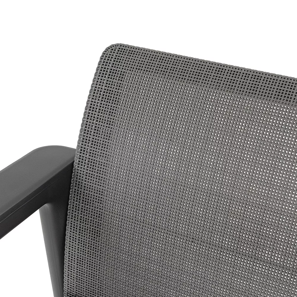 A grafit és hűvös szürke színkombináció kiemeli a fotel modern, ugyanakkor természetes karakterét. A kontrasztos, mégis harmonikus árnyalatok segítik a bútor beillesztését különböző kültéri stílusokba, legyen szó minimalista vagy természetközeli kialakításról. A két árnyalat egységes, letisztult megjelenést biztosít, amely könnyen kombinálható más kültéri bútorokkal és burkolatokkal.