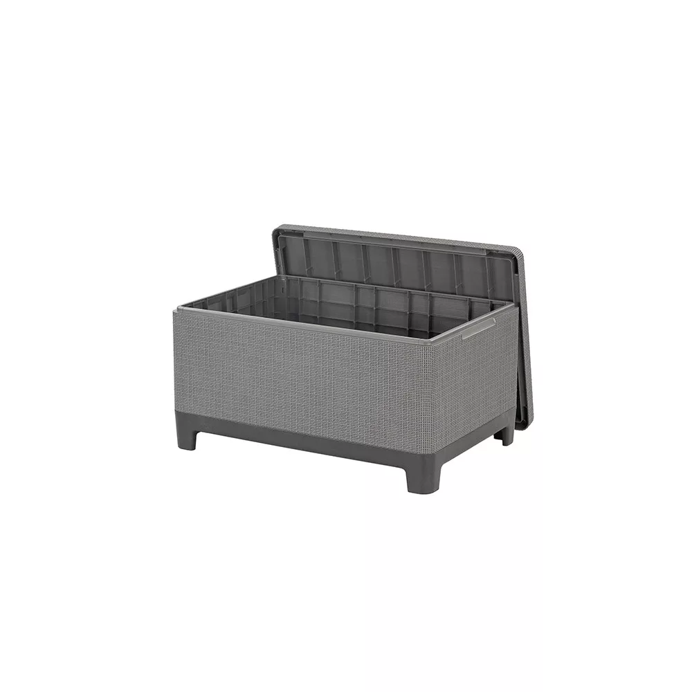 Ideális választás azok számára, akik grafit-hűvösszürke kerti bútor szettet keresnek, időjárásálló műanyag kültéri bútort szeretnének, kisebb teraszra vagy erkélyre is elhelyezhető kompakt megoldást választanának, illetve előnyben részesítik a tárolóval ellátott kerti asztalt. Stabil, modern és hosszú távon is kényelmes kültéri ülőgarnitúra.