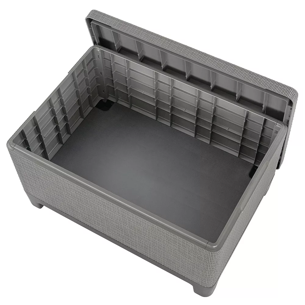 Scandi Box max linea duo kerti bútor szett jute tárolós asztallal – grafit-hűvösszürke