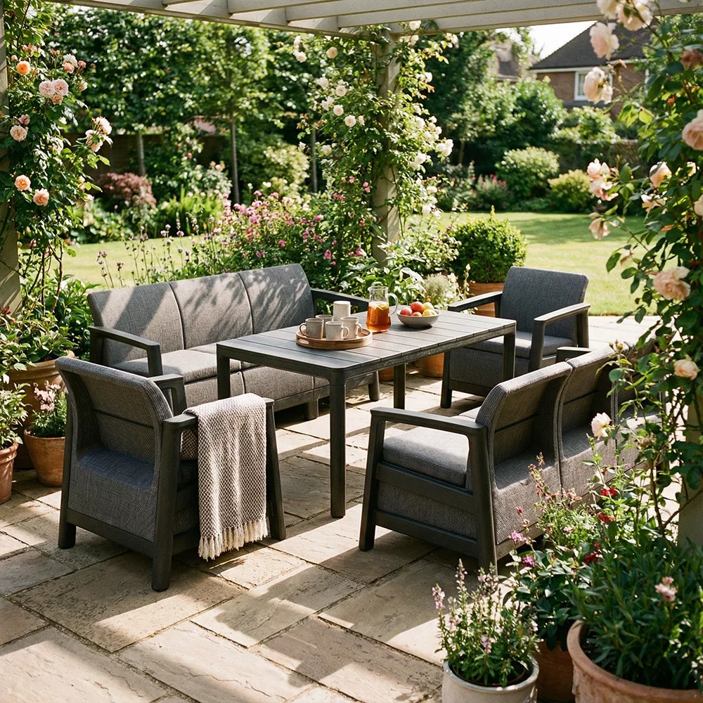Időjárásálló műanyag kerti bútor kültéri használatra