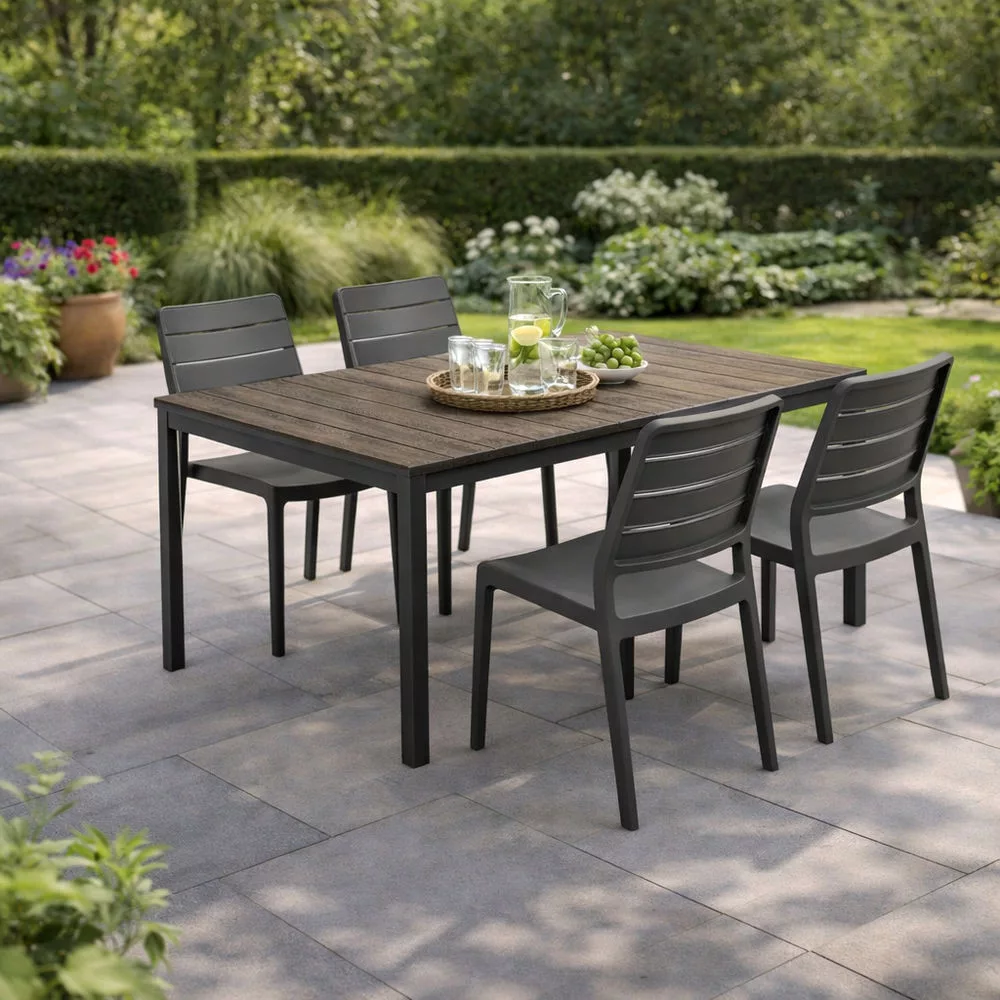 Porto Nova 160 műanyag kerti asztal dió-grafit