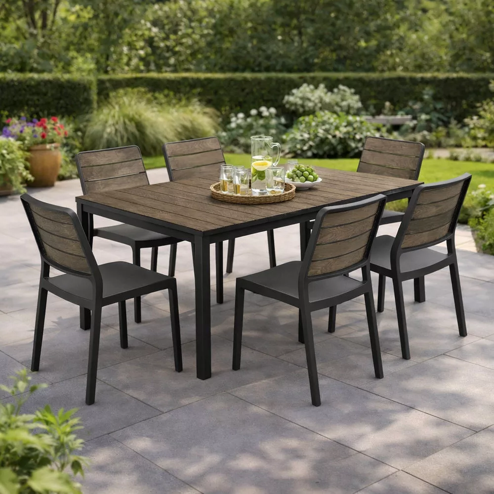 Porto Nova 160 műanyag kerti asztal dió-grafit