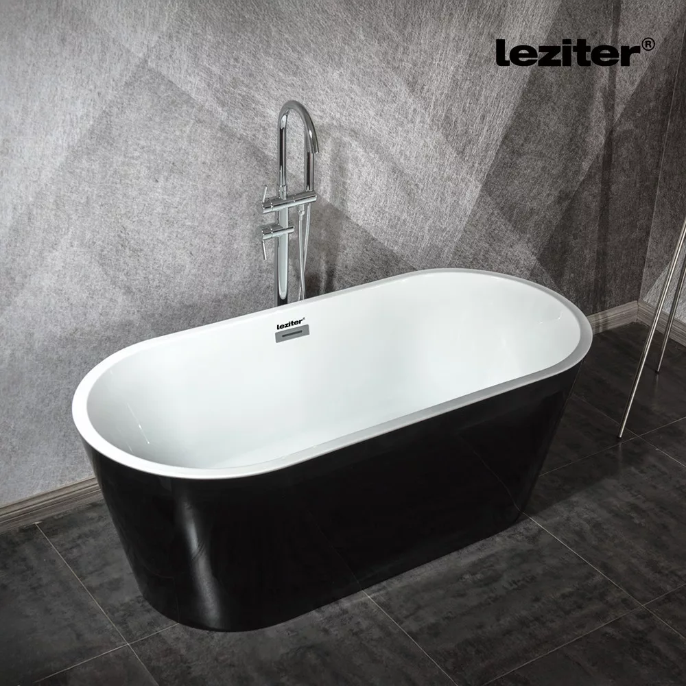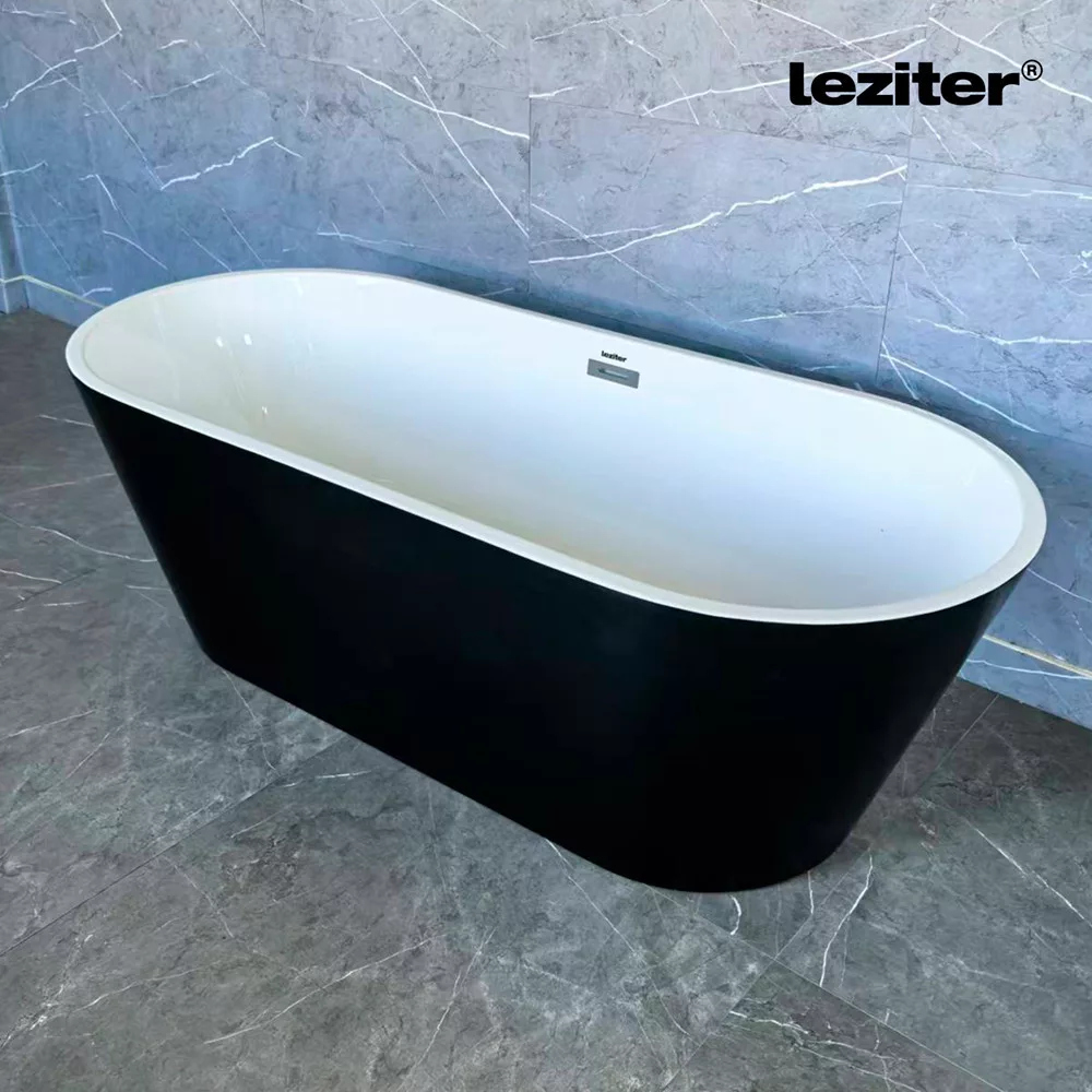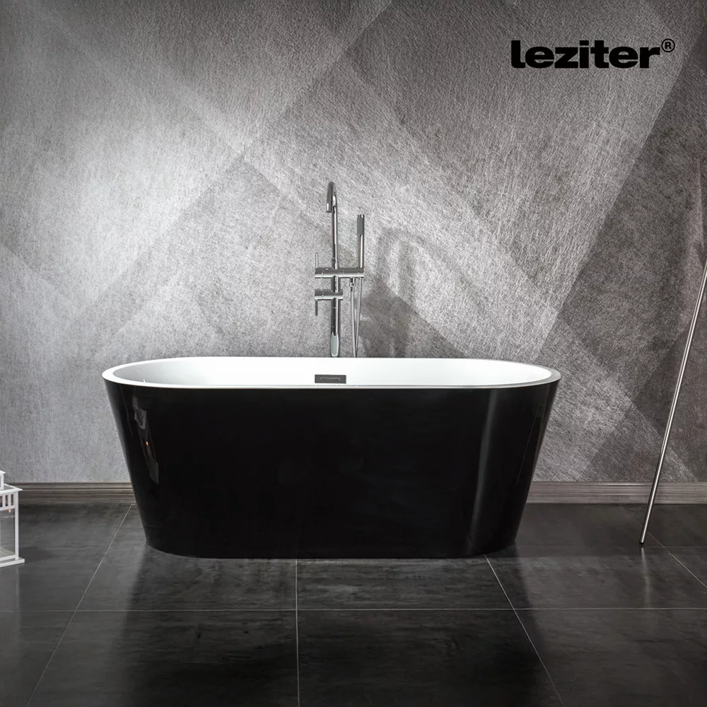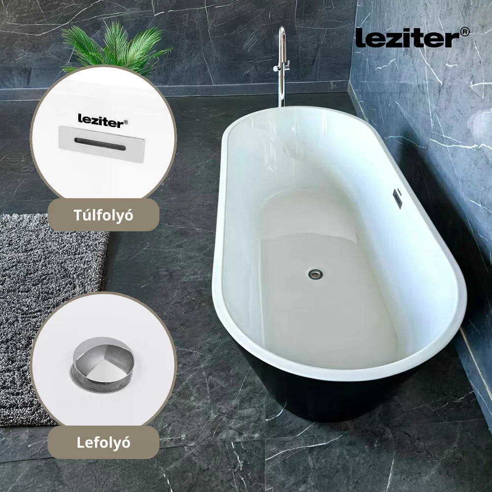 A Leziter Noa szabadon álló fürdőkád elegáns fekete külsővel, kényelmes ergonomikus kialakítással és tartós akril szerkezettel ideális választás modern fürdőszobákba.