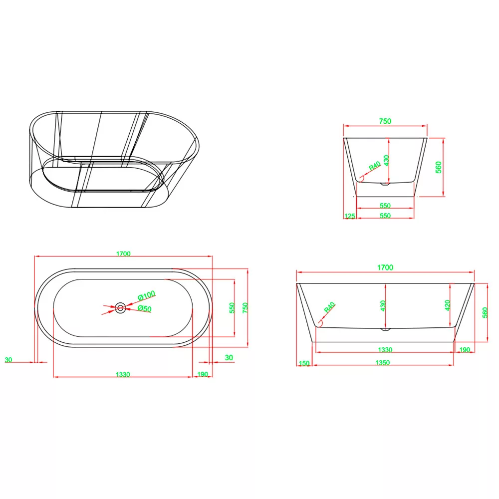- Anyag: akril fürdőkád