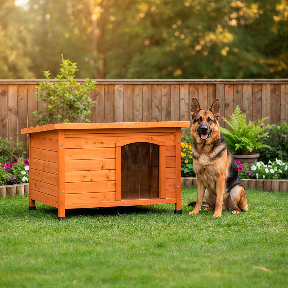 Az egyik legfontosabb jellemzője ennek a kutyaháznak a lapos tető, amely lehetővé teszi, hogy a házat szűkös helyre is könnyedén elhelyezezzük. Ezenkívül a tetőtúlnyúlások megvédenek mindent az esőtől. Az állítható magasságú gumisapkák a kutyaház talpán biztosítják a stabilitást, és megvédik azt a nedvességtől, miközben lehetővé teszik a levegő áramlását a házikó alatt, ami kiválóan védi kedvencét a talaj hidegétől és nedvességétől.