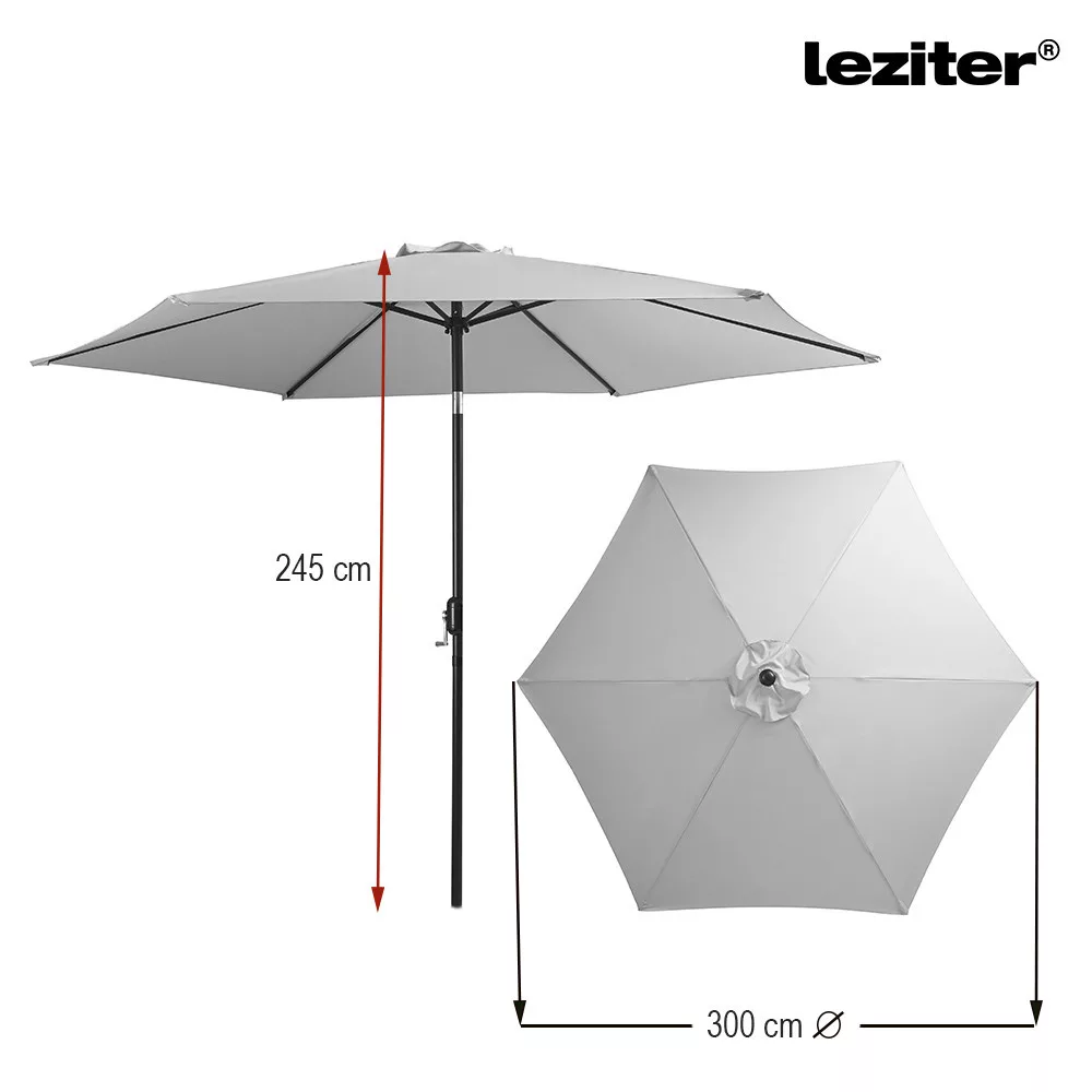A Leziter Gina kerti napernyő 300 cm átmérőjű kialakítással rendelkezik, amely egyenletes lefedést biztosít a középoszlop körül. A kör alakú forma jól használható kertekben, teraszokon vagy kerti bútorok fölött. A ponyva kialakítása a mindennapi kültéri használathoz igazodik, felülete vízlepergető, így a nedvesség nem szívódik fel azonnal. A piros szín karakteres megjelenést ad, és jól illeszkedik különböző kerti környezetekhez.