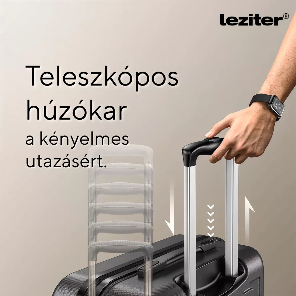 - Húzószerkezet: Teleszkópos, fém kar (nagy bőrönd)