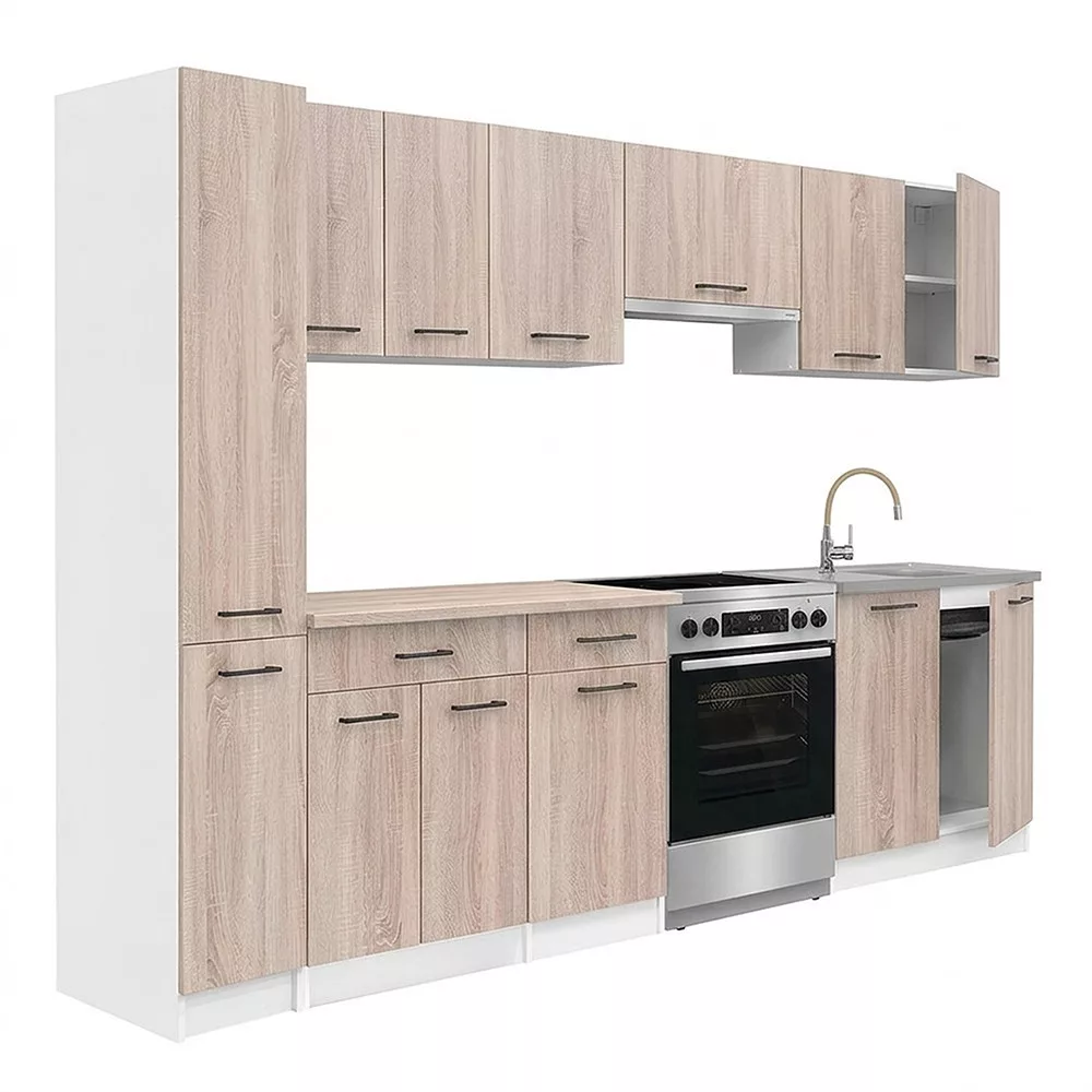 Praktik 270 konyhabútor fehér korpusz, sonoma tölgy front