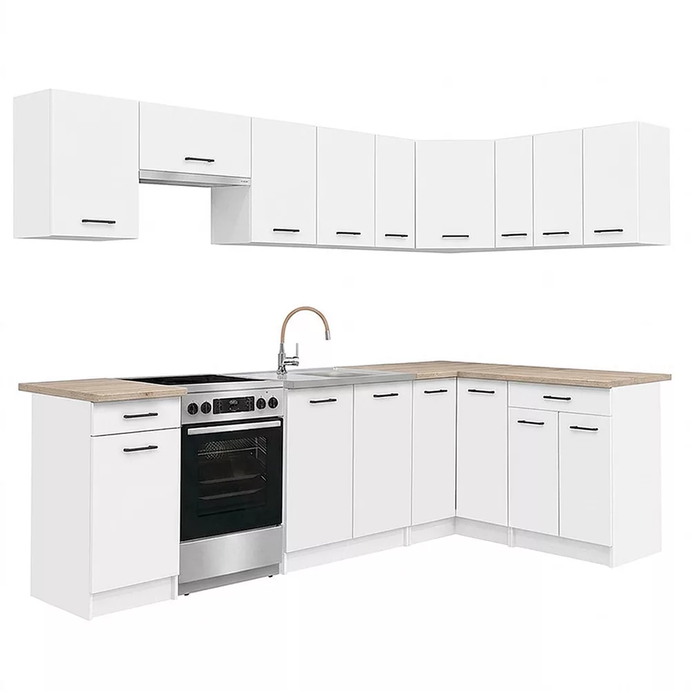 Fehér korpuszos, modern sarok konyhabútor, amely együtt nő az igényeiddel