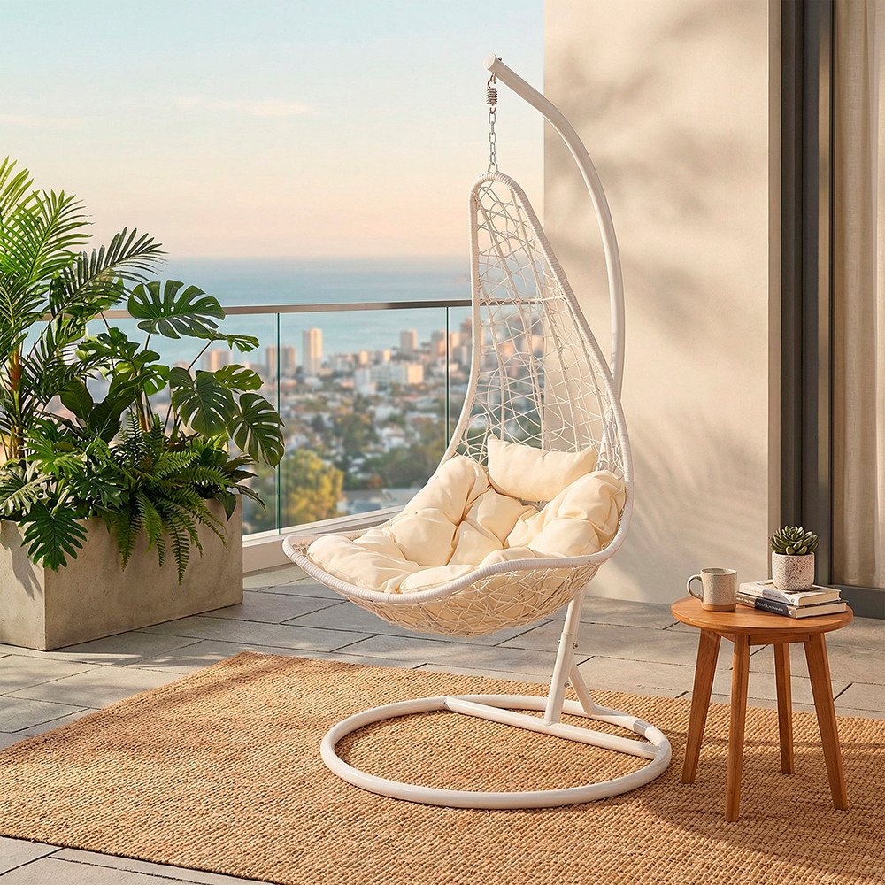 A bézs árnyalat letisztult, időtálló választás kültéri környezetbe. Könnyen kombinálható fehér, natúr vagy fémvázas függőfotelekkel, és harmonikusan illeszkedik modern, mediterrán vagy természetközeli stílusú teraszokhoz. A világos tónus barátságos, nyugodt hangulatot teremt, miközben elegáns összhatást biztosít, így a függőfotel a tér egyik meghatározó, mégis harmonikus eleme lesz.