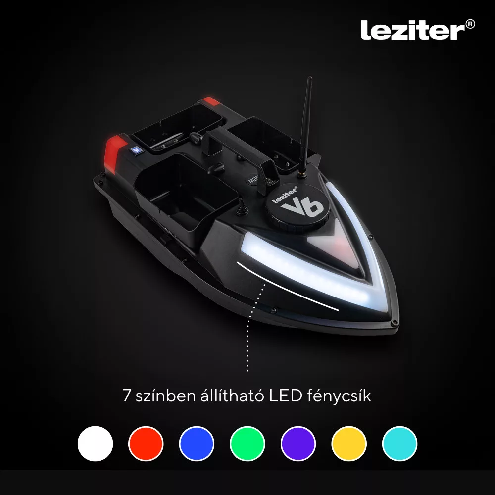 Etetőhajó GPS vezérléssel és 3 tartállyal – fekete színben | 500 m hatótáv, 2 kg kapacitás, LED világítás