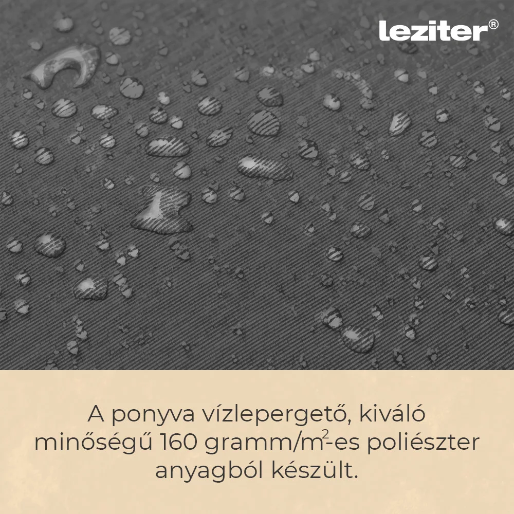 - Ponyva anyaga: 160 g/m² poliészter PA bevonattal