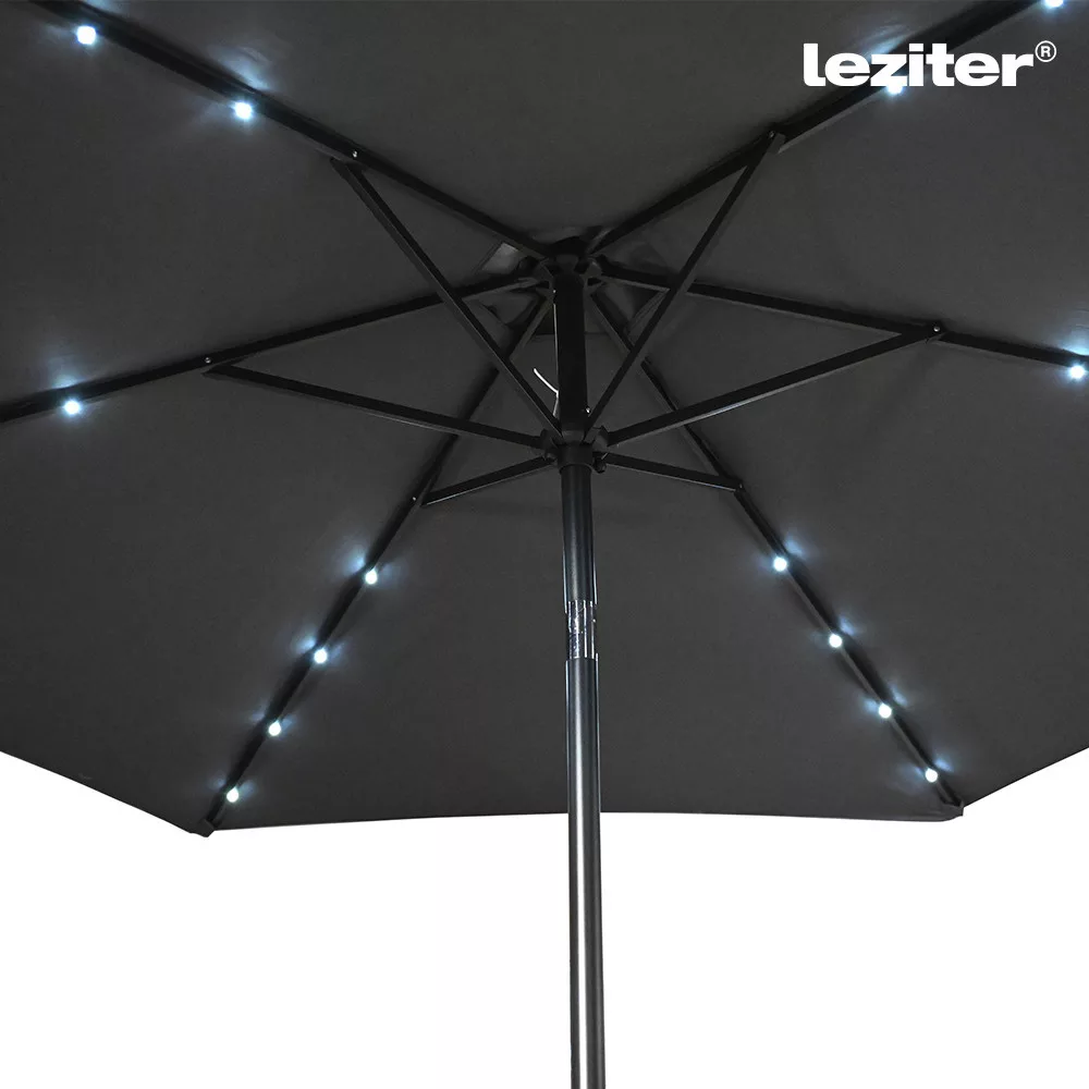Acél vázas, tekerőkaros és dönthető kerti napernyő LED világítással