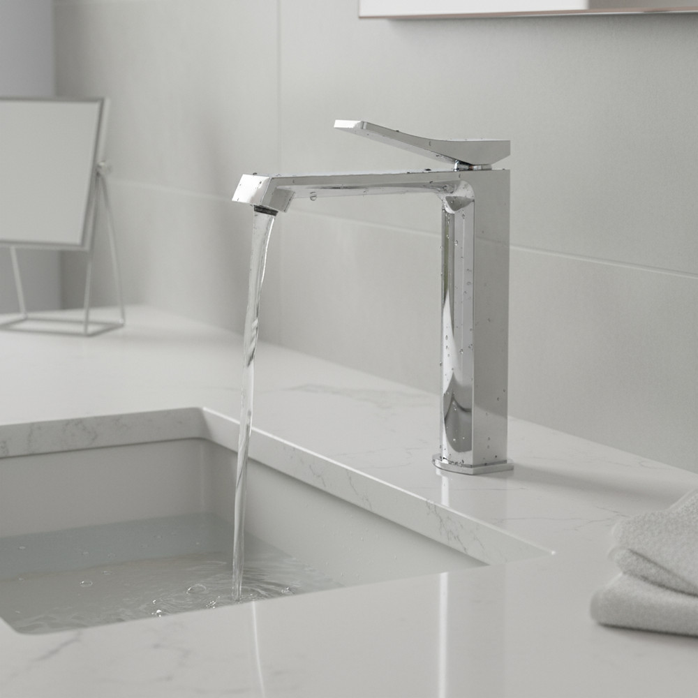 A magasított kialakításnak köszönhetően ideális választás pultos, álló mosdókagylókhoz, ahol a forma és a funkció harmóniája kulcsfontosságú.